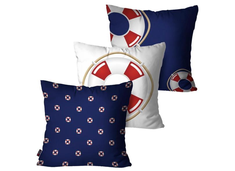 Kit com 3 Capas para Almofadas Decorativas Azul Boias Salva-Vidas