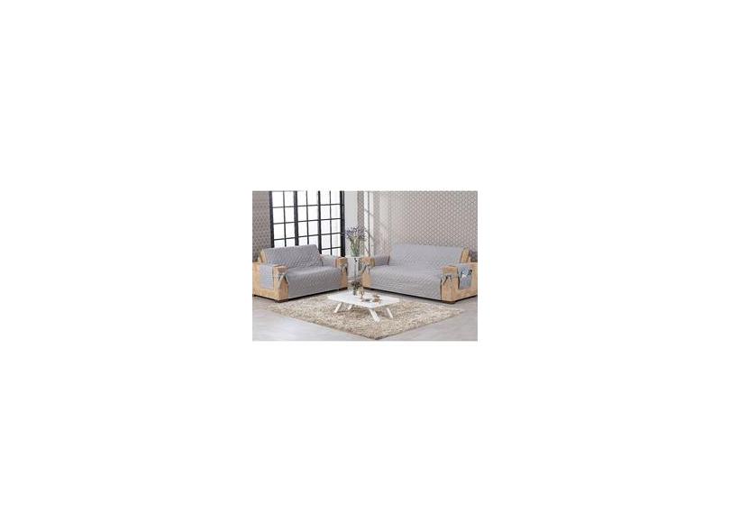 kit protetor capa de sofá para sala 2 e 3 lugares matelado cinza com detalhe laço lançamento