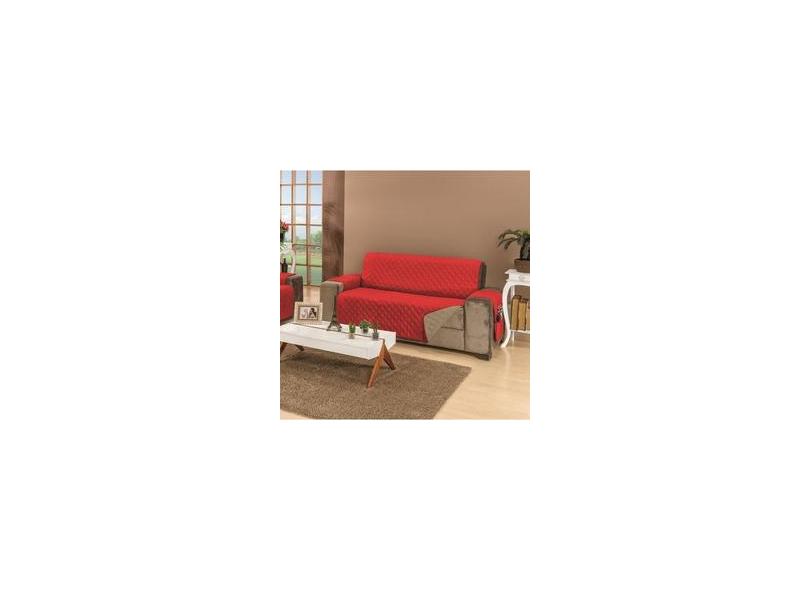 Protetor de Sofá Impermeável 04 Lugares Dupla Face Porta Objetos Capa de Sofá VERMELHO CÁQUI