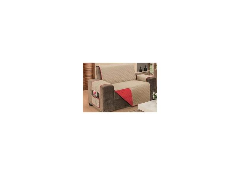 Protetor Impermeável Para Sofá 2 Lugares King Com Assento de 1,20M D Face Manu - Cáqui Com Vermelho
