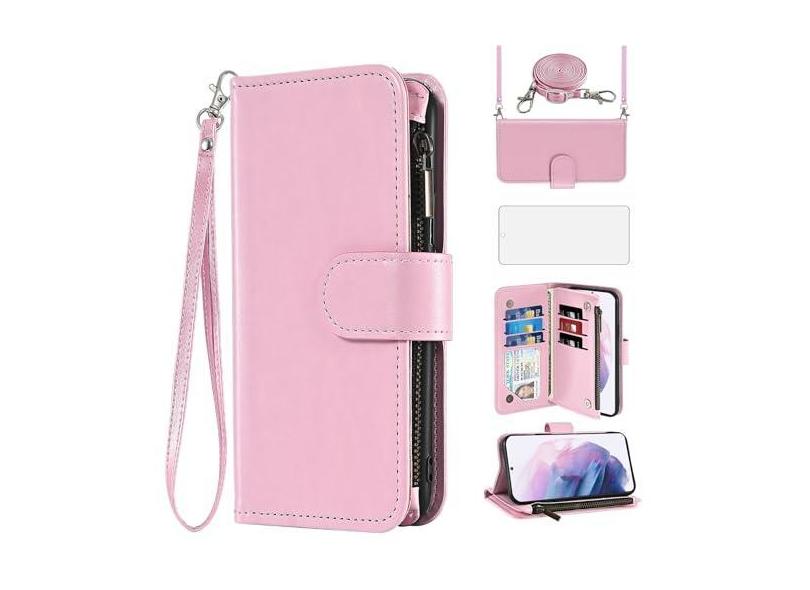 Asuwish Capa de celular para Samsung Galaxy S21 Plus S21+ 5G carteira celular com protetor de tela alça transversal flip zíper suporte para cartão suporte S21+5G S21plus 21S + S 21 21+ G5 mulheres