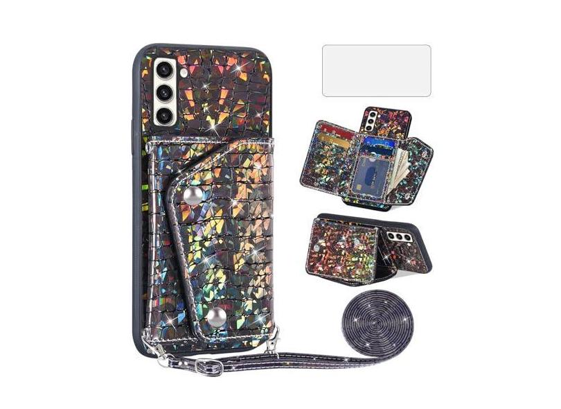 Asuwish Capa de celular para Samsung Galaxy S23 Plus S23+ 5G capa carteira com protetor de tela e suporte para cartão de couro brilhante celular S23plus 23S + S 23 23+ SM-S916U 16.8 cm feminino