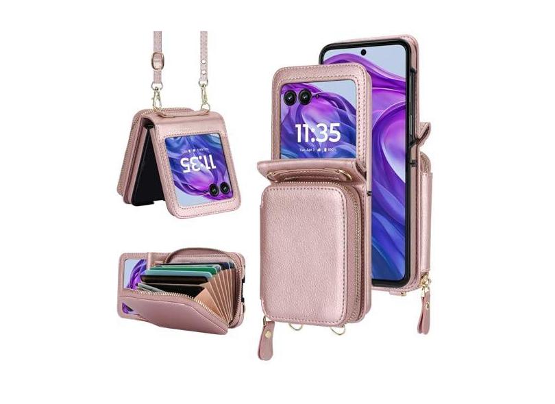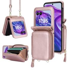 Asuwish Capa de telefone para Motorola Razr 2024/Moto Razr 50 capa carteira com suporte para cartão de crédito slot com zíper alça transversal cordão de bloqueio RFID bolsa fina Razr2024 5G mulheres