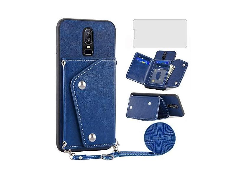 Asuwish Capa de telefone para OnePlus 6 carteira com protetor de tela e suporte para cartão de crédito alça transversal suporte celular de couro OnePlus6 A6000 One Plus6 1 Plus 1 plus Six One+ 1+ 6