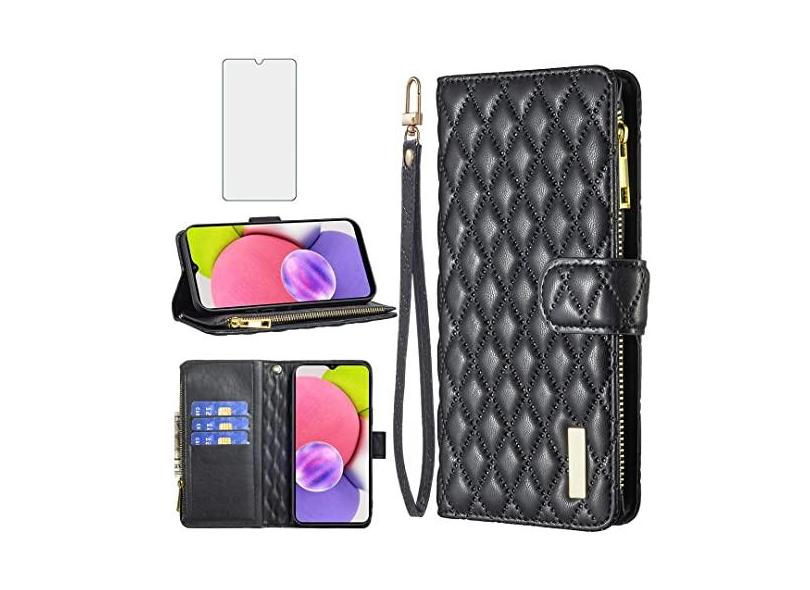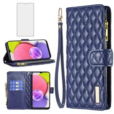 Asuwish Capa de telefone para Samsung Galaxy A03s versão EUA 5G 2022 capa carteira com protetor de tela de vidro temperado e porta-cartão de crédito flip de couro celular Ao3s A 03s SM-A037U SM A037U