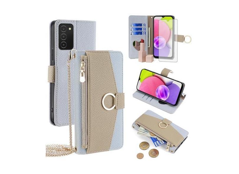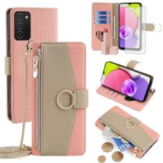 Asuwish Capa de telefone para Samsung Galaxy A03s versão EUA 5G 2022 capa carteira com protetor de tela e espelho capa flip anel suporte cartão alça transversal suporte celular Ao3s A 03s SM-A037U SM