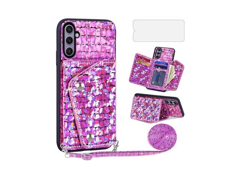 O menor preço encontrado no Brasil para Asuwish Capa de telefone para Samsung Galaxy S24 5G capa carteira com protetor de tela de vidro temperado e suporte para cartão de crédito couro brilhante acessórios para celular S 24 24S G5 mulheres atualmente é R$ 137,24.