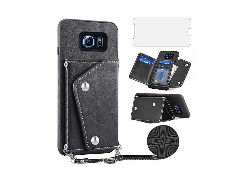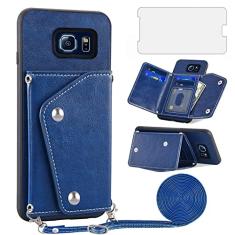Asuwish Capa de telefone para Samsung Galaxy S6 capa carteira com protetor de tela de vidro temperado e suporte para cartão de crédito alça transversal acessórios de celular de couro S 6 6s GS6