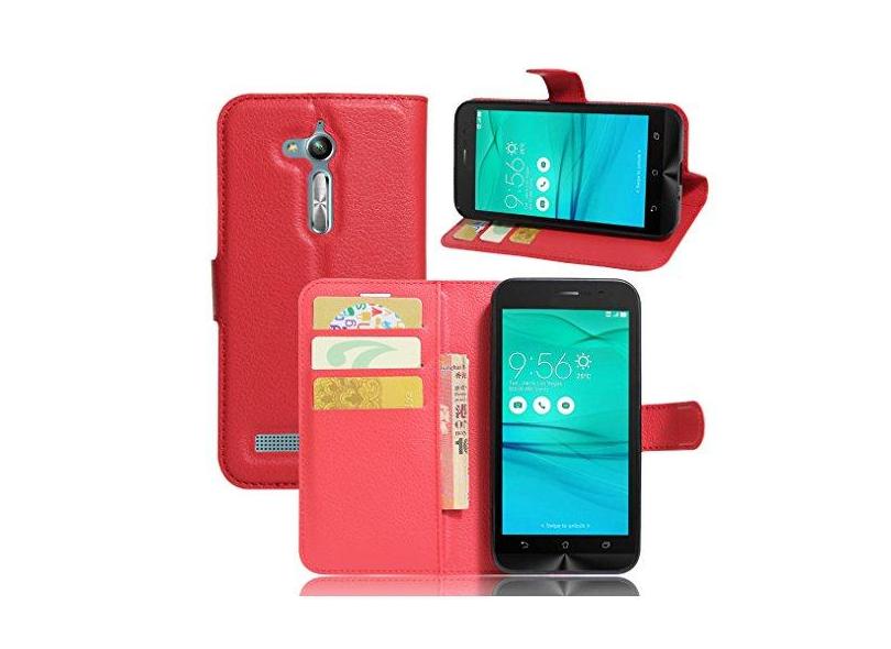Capa carteira ASUS ZB500KG, capa carteira flip de couro PU premium com compartimento para cartão, suporte e fecho magnético [capa interior à prova de choque de TPU] Compatível com ASUS ZB500KG