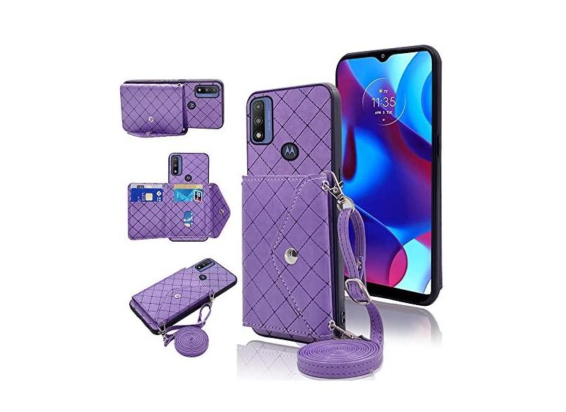 Capa carteira compatível com Motorola Moto G Power 2022/MotoG Play 2023/G Pure 2021 com alça de ombro transversal e suporte para cartão de crédito de couro para XT2165DL XT2163DL XT2165-5 XT2271-5