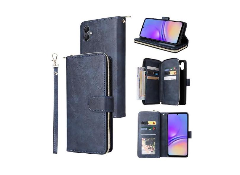 Capa carteira para Samsung Galaxy A05, 9 compartimentos para cartão, 1 carteira premium com zíper com alça de pulso, capa de celular flip de couro com suporte para Galaxy A05 de 6,7 polegadas 2023