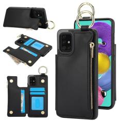 Capa carteira para Samsung Galaxy A71 4G, 3 compartimentos para cartão, 1 bolso com zíper, fecho magnético com suporte de anel, à prova de choque, bloqueio de RFID, capa para celular para Samsung A71