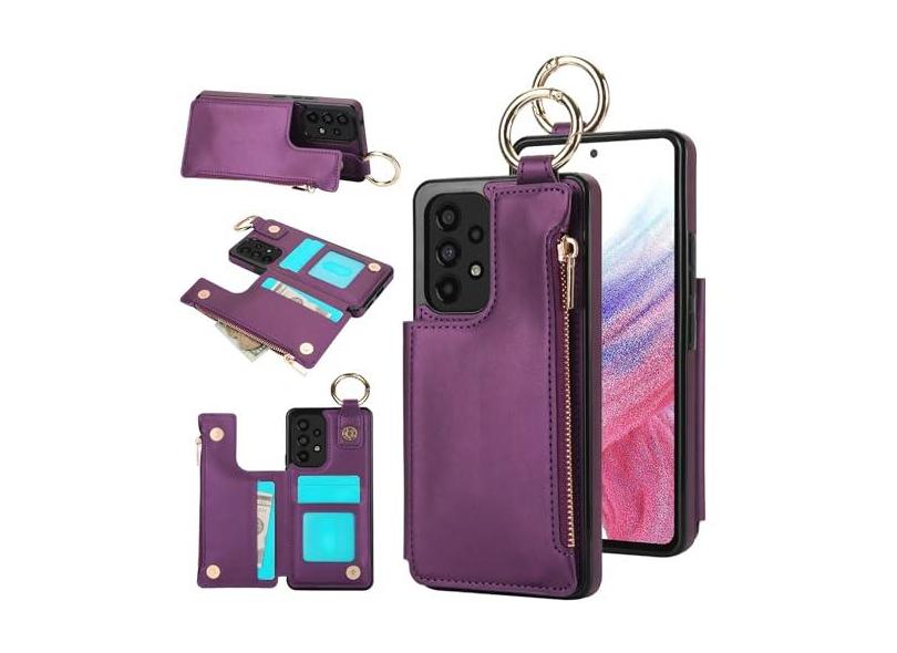Capa carteira para Samsung Galaxy A72 5G, 3 compartimentos para cartão, 1 bolso com zíper, suporte de fecho magnético com suporte de anel à prova de choque com bloqueio de RFID para Samsung A72 5G