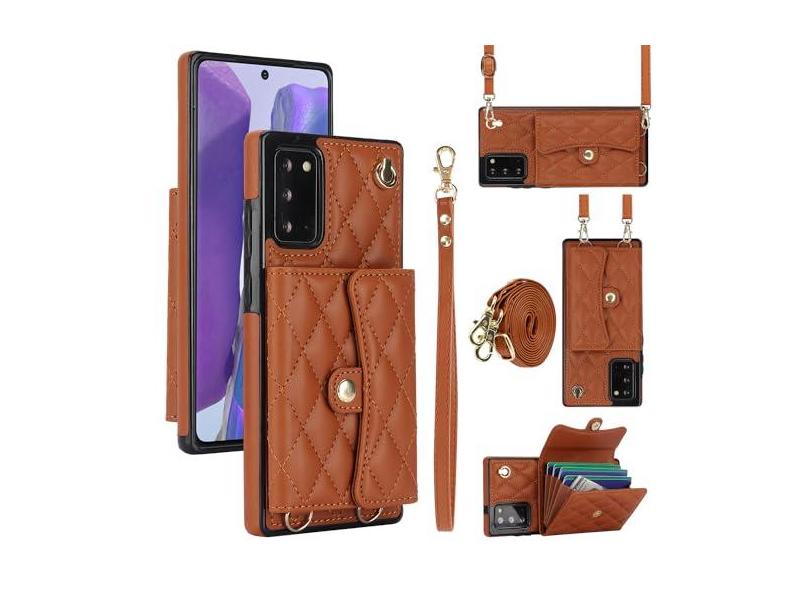 O menor preço encontrado no Brasil para Capa carteira para Samsung Galaxy Note 20 com 4 pontos de cartão, capa de couro transversal com bloqueio de RFID, capa de telefone com suporte de fivela magnética, alça de pulso à prova de choque para atualmente é R$ 144,02.