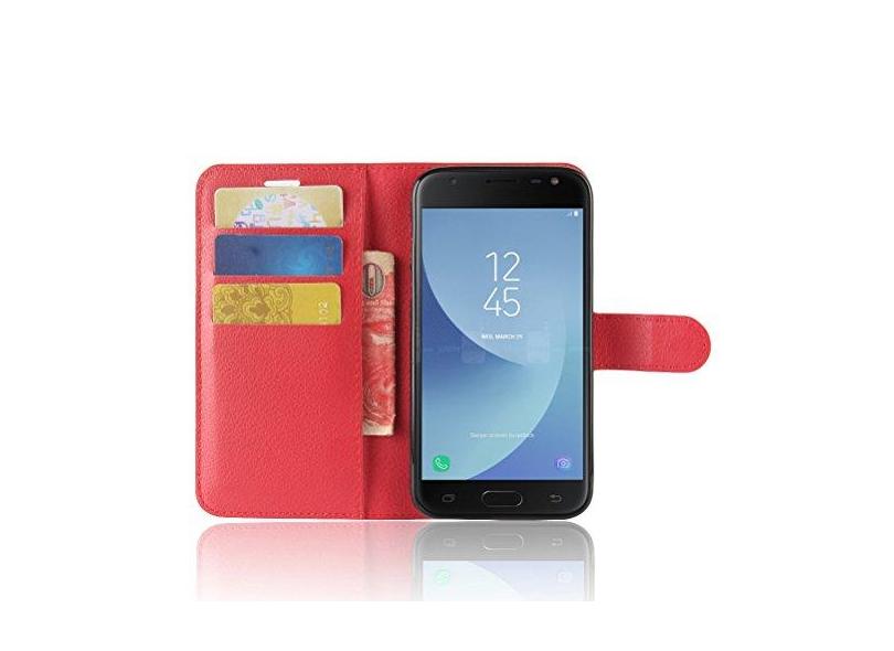 Capa carteira para Samsung J2 Pro 2018, capa carteira flip de couro PU premium com compartimento para cartão, suporte e fecho magnético [capa interior à prova de choque de TPU] compatível com Samsung