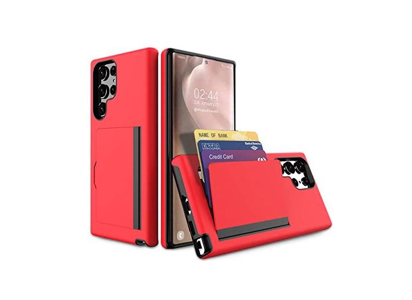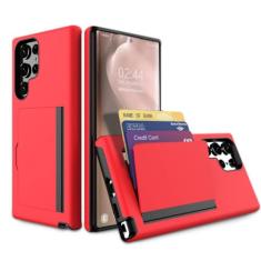 Capa carteira protetora de cartão de crédito para Samsung Galaxy S23 Ultra S22 S21 S20 S10 Plus 5G Capa traseira para Samsung Note 20 10, vermelha, para Galaxy S21 FE