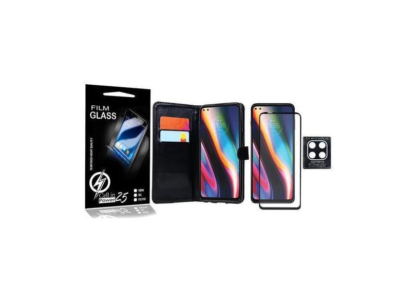 Capa Carteira + Vidro 3d + Pel Camera Moto G 5G Plus 6.7 XT2075 - Cell