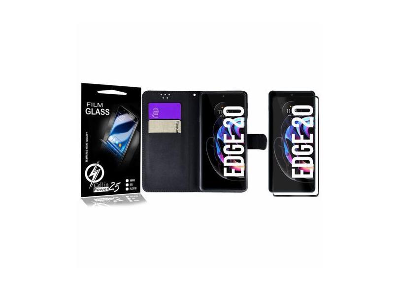 Capa Case Flip Carteira + 2 Películas Vidro 3D Para Moto Edge 20 XT214