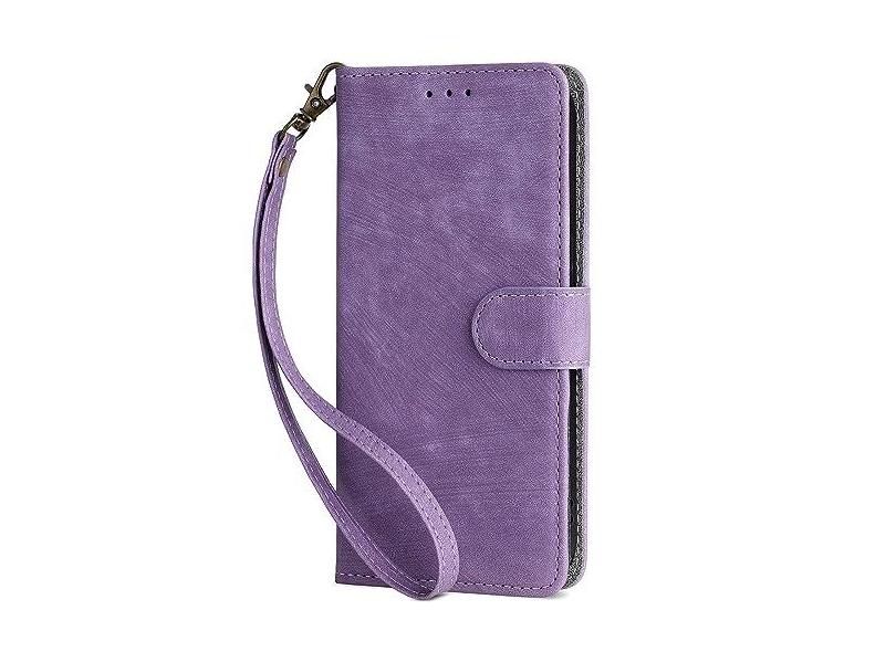 Capa compatível com Samsung Galaxy A05S 4G, capa com compartimento para cartão. Design carteira, proteção RFID. Capa flip sustentável roxa