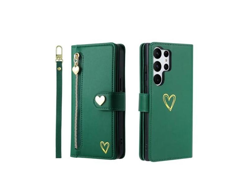 Capa de couro tipo carteira com zíper para Samsung Galaxy S23 S24 Ultra S22 Plus S21 FE A04 A14 A24 A34 A54 A05S A15 Capa de bolsa, verde, para Galaxy S22Ultra