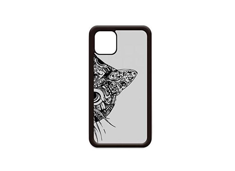 Capa de desenho de linha com cabeça de gato preta para iPhone 12 Pro Max para Apple Mini Mobile Case Shell