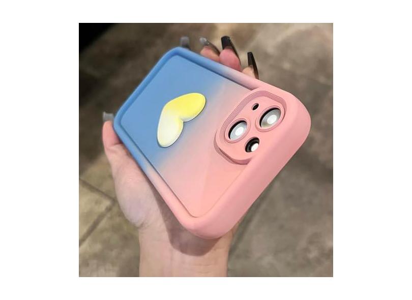 O menor preço encontrado no Brasil para Capa de silicone líquido macio gradiente fofo 3D amor coração para iPhone 11 12 13 14 Pro Max XR X XS 8 7 Plus SE 3 capa de cor doce, rosa azul, para iPhone 13 atualmente é R$ 123,60.