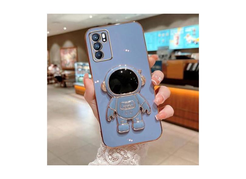 Capa de suporte dobrável de astronauta para OPPO A97 A96 A95 A93 A74 A57 A73 A54 A52 A53 A15 A16 A9 A5 2020 F17 4G 5G Capa de suporte de chapeamento, azul, para Realme 10 4G