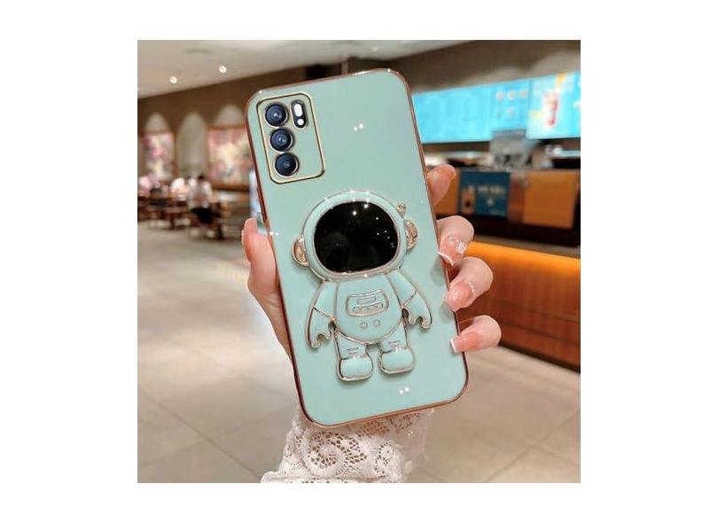 Capa de suporte dobrável de astronauta para OPPO A97 A96 A95 A93 A74 A57 A73 A54 A52 A53 A15 A16 A9 A5 2020 F17 4G 5G Capa de suporte de chapeamento, verde, para Realme 9i 4G