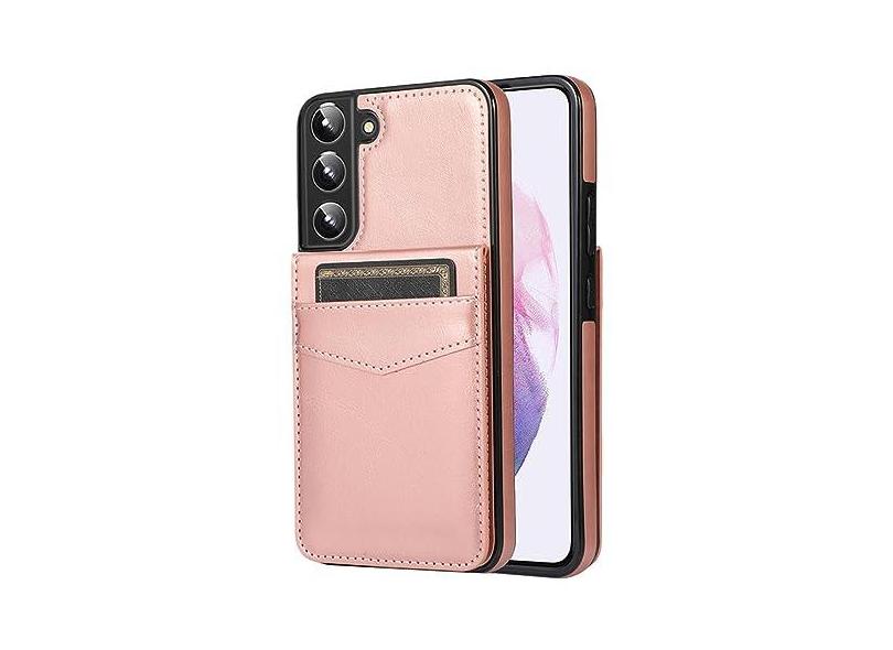 Capa de suporte para Samsung Galaxy S23 S22 S21 S20 FE Ultra S10 E S9 S8 Plus Carteira Cartão Choque Flip Couro Bolsas de telefone Capa, ouro rosa, para Galaxy S10 Plus