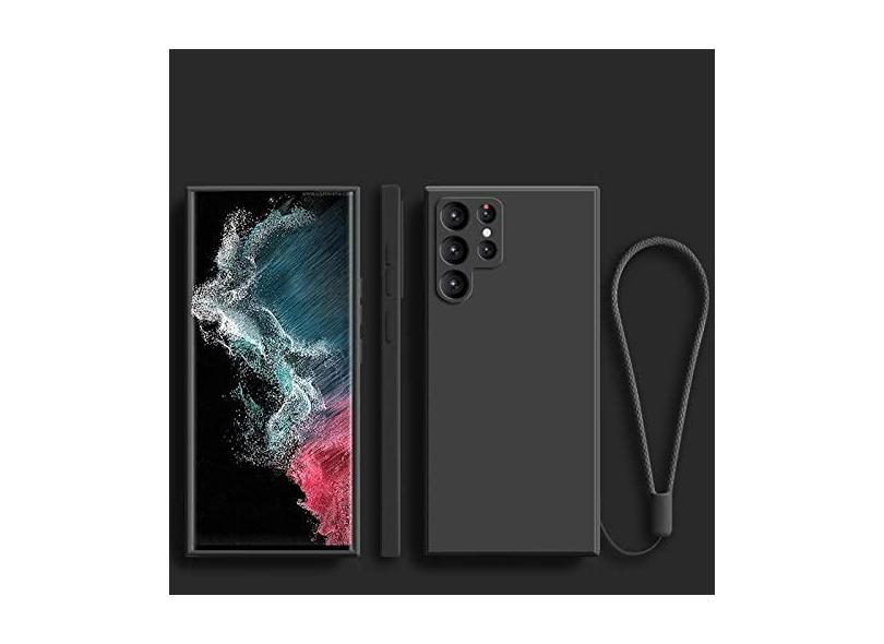 Capa de telefone com alça de pulso de silicone líquido para Samsung S22 Ultra S21 Plus S20 FE Note 20 10 Pro S10 Lite S9 S8 Capa macia, preta, para S9 Plus