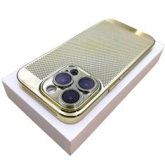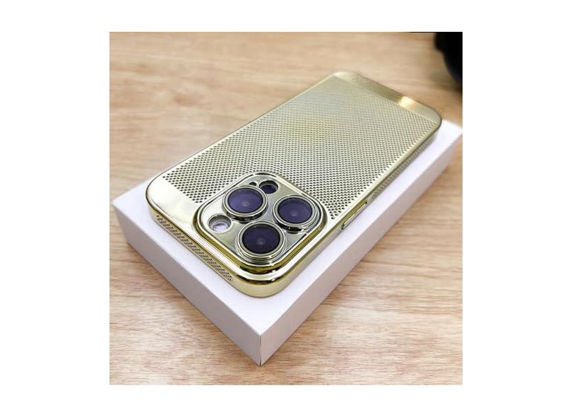 Capa de telefone com dissipação de calor respirável revestida para iPhone 15 14 13 12 11 Pro Max 7 8 Plus XR XSMax Capa galvanizada fina e dura, dourada, para iPhone 14 Plus