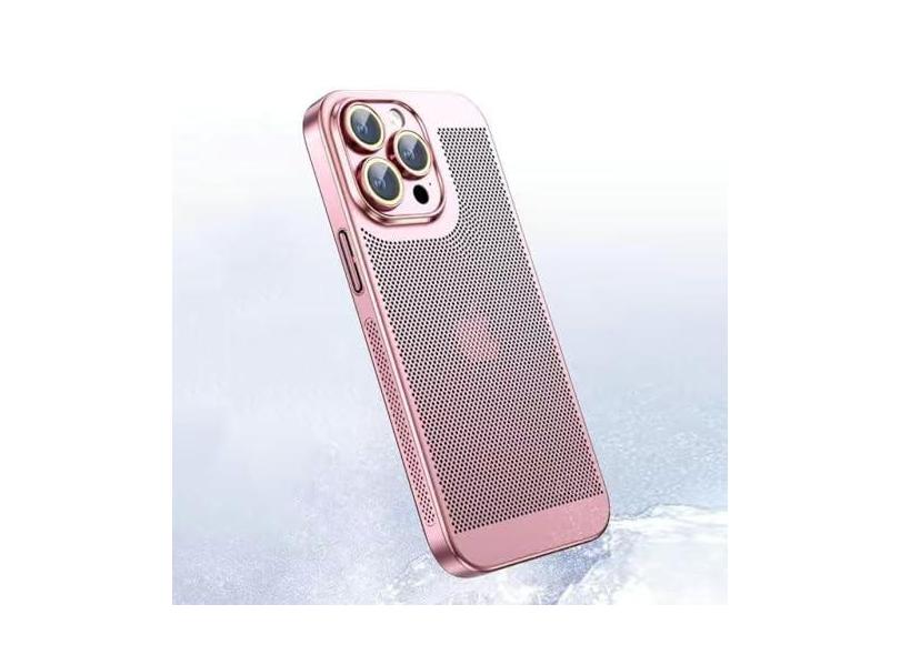 Capa de telefone com dissipação de calor revestida para iPhone 14 15 13 12 11 Pro Max 13 12 Mini X XS XR 7 8 Plus Capa dura de resfriamento respirável, ouro rosa, para iPhone 12 Pro