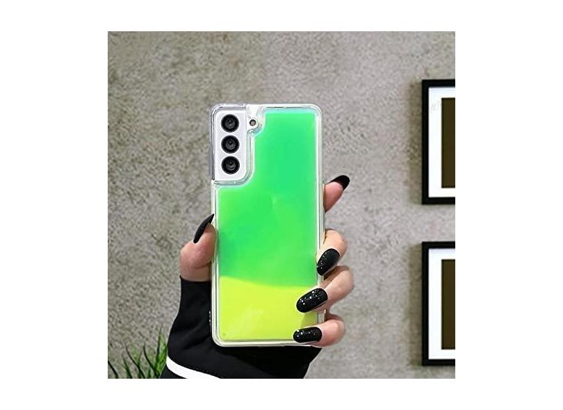 Capa de telefone de areia de néon luminosa para Samsung S23 Ultra S22 Plus S21FE S20 Lite S10 S9 S23 Plus Liquid Glitter Capa de telefone de areia movediça, verde, para Samsung S10 Lite