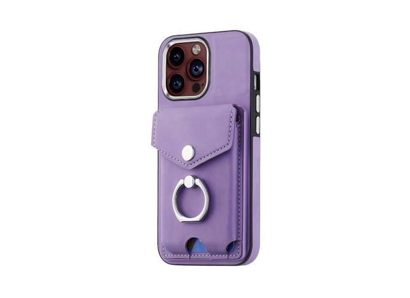 Capa de telefone de couro com anel de dedo para iPhone 15 Pro Max 14 13 12 11 Pro Max 15 Plus 13 Pro Capa com compartimento para cartão carteira, roxa, para iPhone 11Pro Max