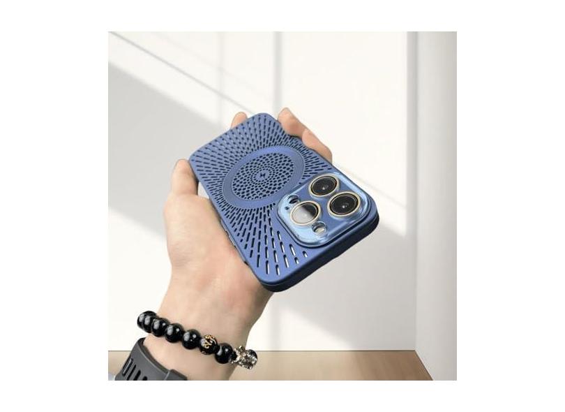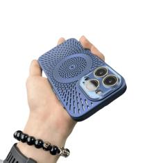 Capa de telefone de malha de dissipação de calor respirável 12 13 14 15 pro max capa de telefone de carregamento sem fio magnético, azul escuro, para iphone 12 promax