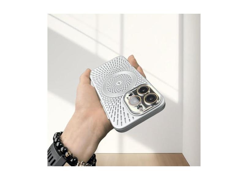 Capa de telefone de malha de dissipação de calor respirável 12 13 14 15 pro max capa de telefone de carregamento sem fio magnético, prata, para iphone 14