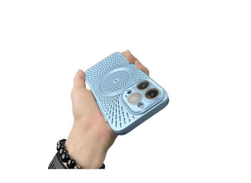 Capa de telefone de malha de dissipação de calor respirável 14 13 12 15 pro max capa de telefone de carregamento sem fio magnético, azul claro, para iphone 13