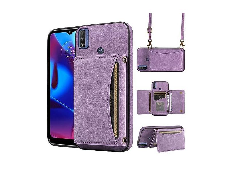 Capa de telefone para Motorola Moto G Power 2022/MotoG Play 2023/G Pure 2021 capa carteira com alça de ombro transversal e bolso de couro para cartão de crédito fino XT2165DL XT2163DL XT2165-5