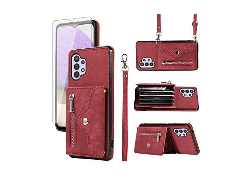 Capa de telefone para Samsung Galaxy A32 5G 2021 16.5 cm capa carteira com alça transversal de pulso suporte de cartão de crédito suporte acessórios de celular de couro M32 G5 A 32 32A S32 SM-A326U