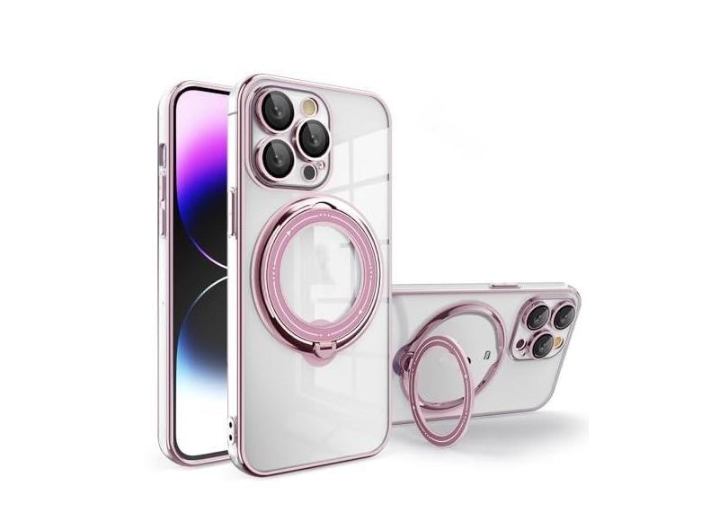 Capa de telefone transparente magnética com anel de chapeamento para iPhone 15 14 Pro Max 13 12 11 XR XS X 7 8 Plus Capa de carregamento sem fio, rosa, para iPhone 11 Pro Max