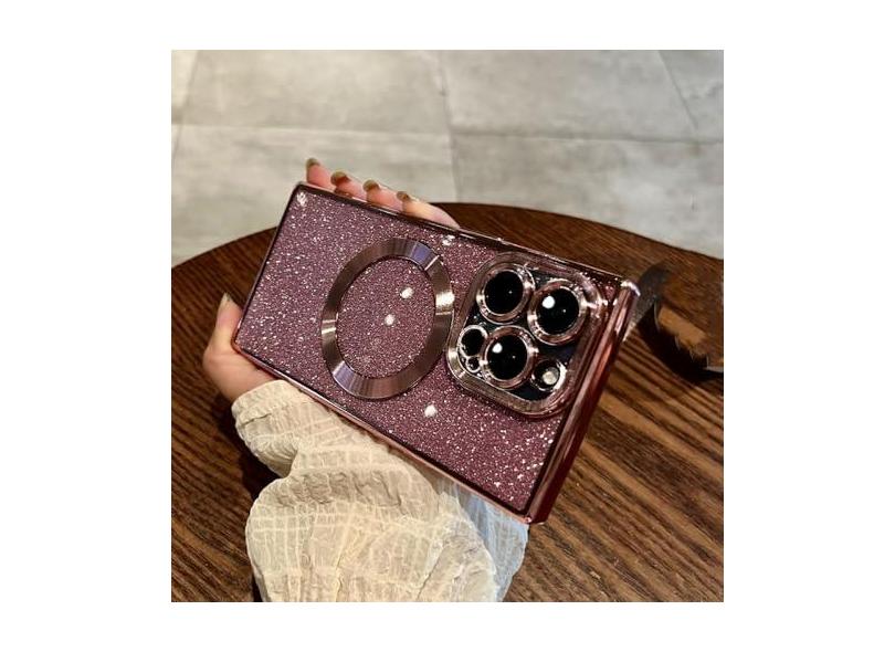 Capa luxuosa de celular com carregamento sem fio, glitter, para iphone 15, 14, 13, 12, 11 pro max plus, capa macia, rosa, para iphone 11