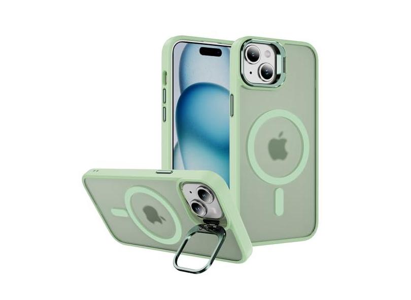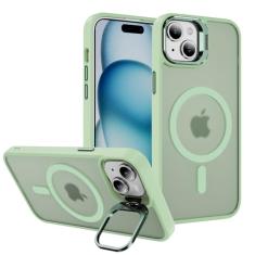 Capa projetada para iPhone 15 Plus e iPhone 14 Plus com magnética, compatível com MagSafe, capa de celular translúcida fosca com suporte para câmera de alumínio integrado para iPhone 6,7 polegadas,