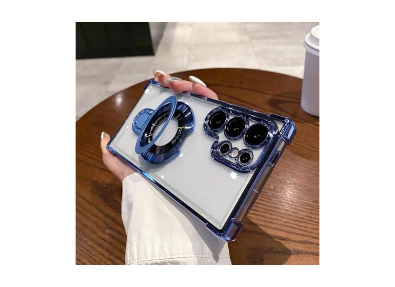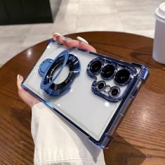 Capa protetora magnética transparente galvanizada para Samsung Galaxy S24 S23 S23 Ultra Stand Quatro cantos Almofada de ar anti-queda, SierraBlue, S22