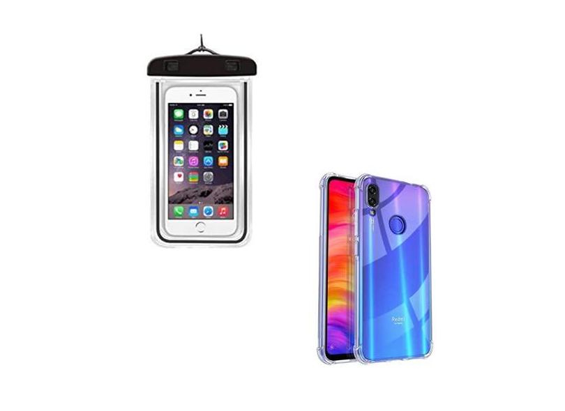 Capa Protetora Prova D'água Mergulho Praia Piscina + Capinha Antichoque Compatível Xiaomi Redmi Note 7