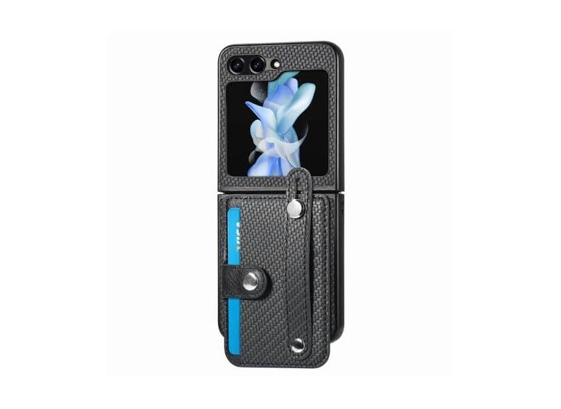 Capa tipo carteira com porta-cartões e amp; Pulseira de pulso para samsung galaxy z flip 6 5 4 3 2 flip6 flip5 flip4 flip3 flip2 5g capa de couro pu, preta, para galaxy z flip 2
