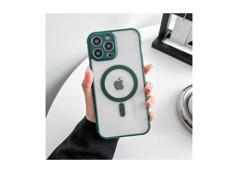 Capa transparente de proteção para câmera, capa de carregamento magnético sem fio para iPhone 14 Plus 13 12 11 Pro Max, verde escuro, para iPhone 11