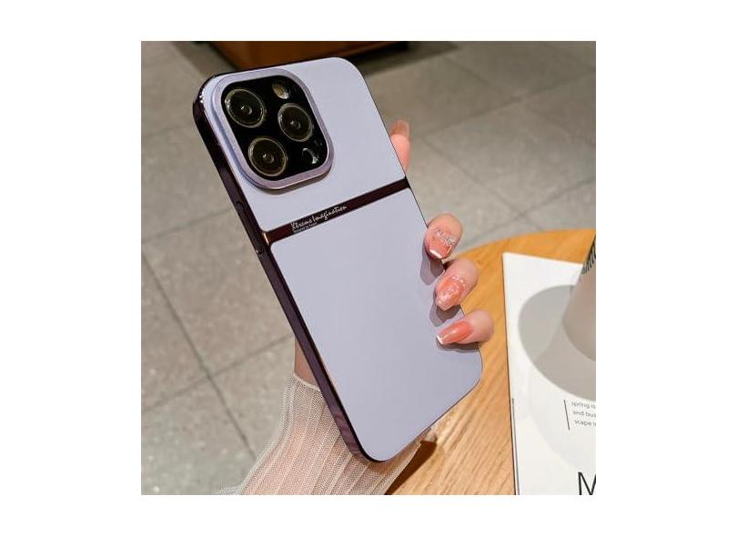 Capa traseira de couro para revestimento comercial para iPhone 13 14 Pro Max 14 Plus Capa híbrida protetora de lente rígida, roxo claro, para iPhone 13 Pro