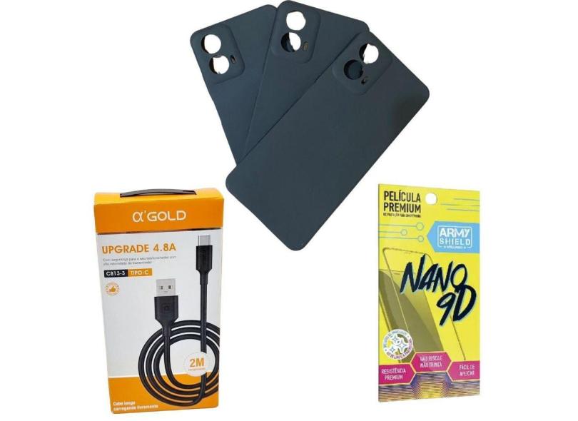 Capinha Preto Moto G24 +Cabo Tipo-C 2 Metros +Pelicula 9D