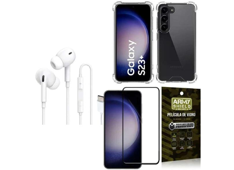 Capinha Samsung S23 Plus + Fone Tipo C Intra Auricular + Película 3D