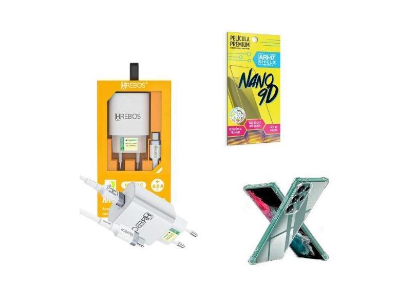 Carregador Turbo + Capinha Samsung S23 Ultra + Película 9D - Hrebos